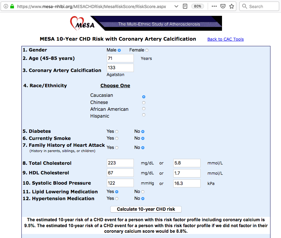| Calculated 10-year coronary risk |