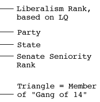The coolest feature is how the shading of each Senator's tile reflects the degree to which he or she voted liberally or conservatively in 2003-2004!